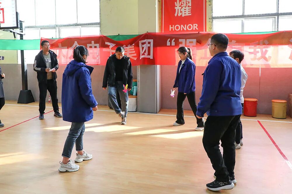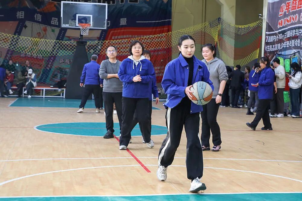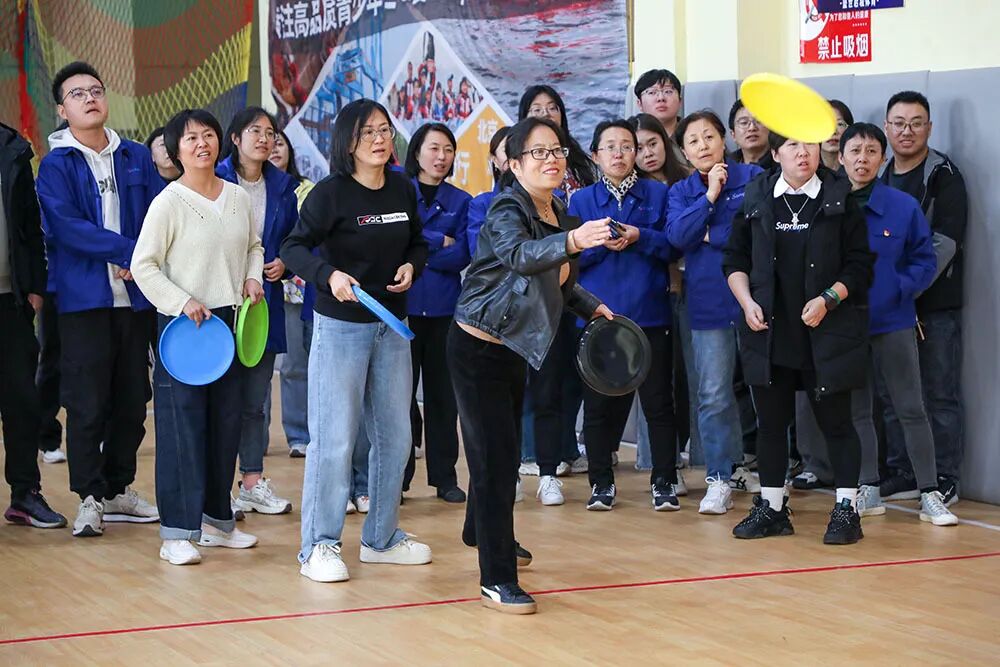 赛场上,各项目亮点纷呈:“飞盘九宫格”前,手起盘落间尽显精准与策略的博弈;“毽影飞扬”区,脚尖轻挑中,团队协作的节奏感瞬间拉满;“同心击鼓”处,各色瑜伽球在鼓面默契跳跃,每一次起落都是齐心协力的见证;“心心相印”项目里,队员们前胸贴后背夹球狂奔,滑稽的“企鹅步态”屡屡引爆全场欢笑;三步跨栏接力赛道上,运球、突破、投篮一气呵成,矫健身影诠释着运动激情。