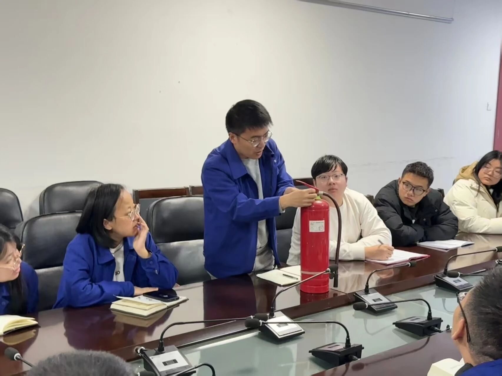 机械工程部党支部开展“安全护航•科研先行”主题党日活动。安全员为大家讲解了干粉灭火器、二氧化碳灭火器、水基型灭火器的使用场景及操作规范,重点演示了针对电气火灾、易燃化学品泄漏等科研常见险情的应急处置方法。大家还共同观看了消防安全警示片。培训结束后,支部又开展了消防应急逃生演练,全体职工弯腰低姿、湿巾捂鼻、有序撤离,在最短时间内完成疏散。