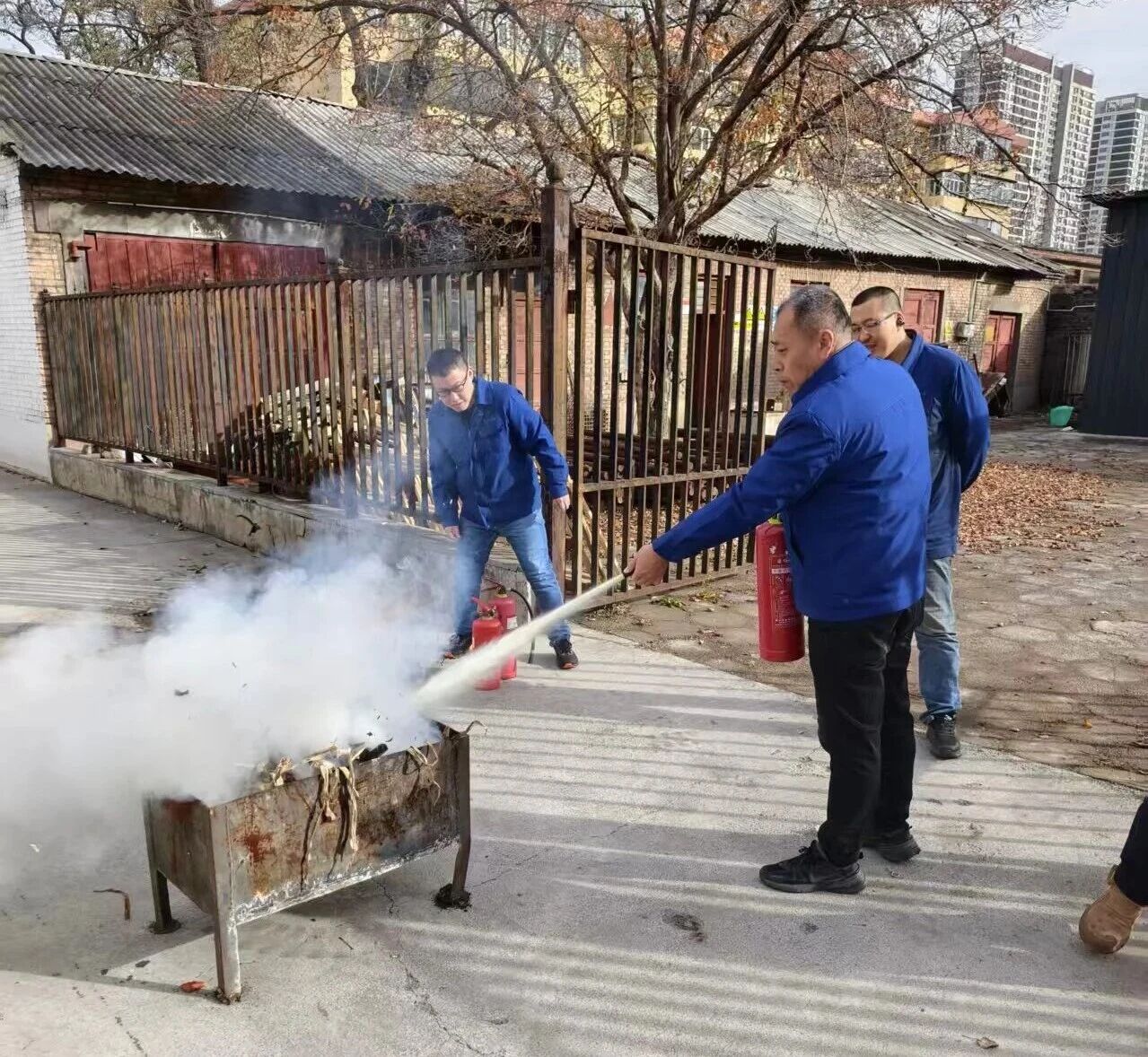 11月20日,工模具分公司开展灭火器实操演练。演练中,职工们逐一拿起灭火器,按照“提、拔、握、压”四字使用口诀,模拟扑灭“火源”。实战化演练科目,让职工真正掌握了灭火器的正确使用方法,提升应对突发火灾的能力。